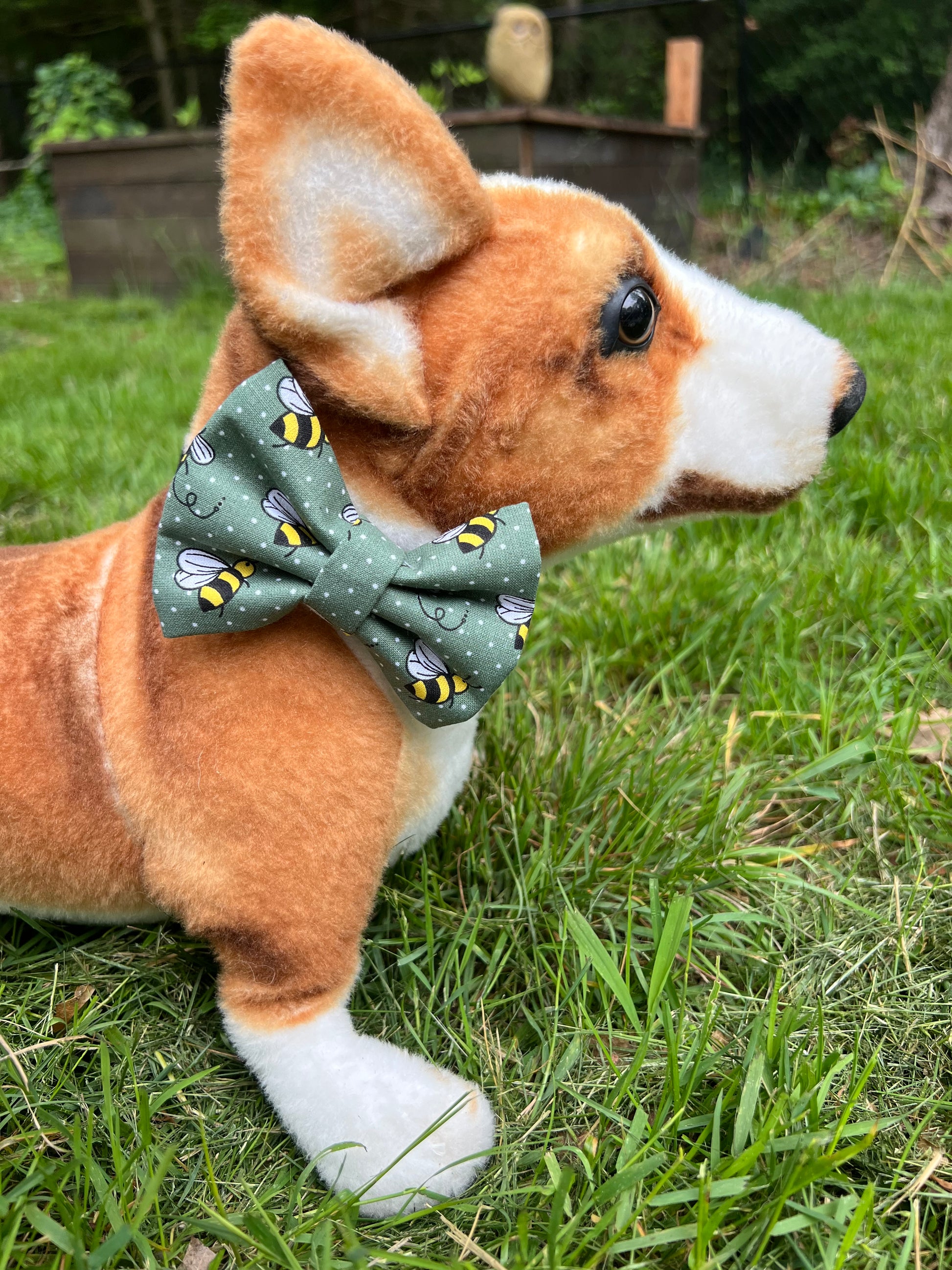 Handmade on Cape Cod! These bow ties easily attach to any collar with two hook and loop fasteners for a secure, adjustable attachment.